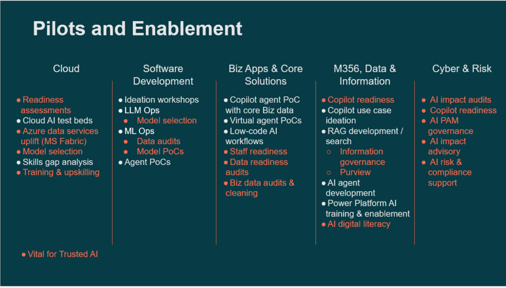 I presented this matrix at a Crayon Connect partner summit event last year, and it remains pretty well in line with where we see early stage projects for Copilot getting the go-ahead with customers. I’ve added some additional context around some of these further below.
